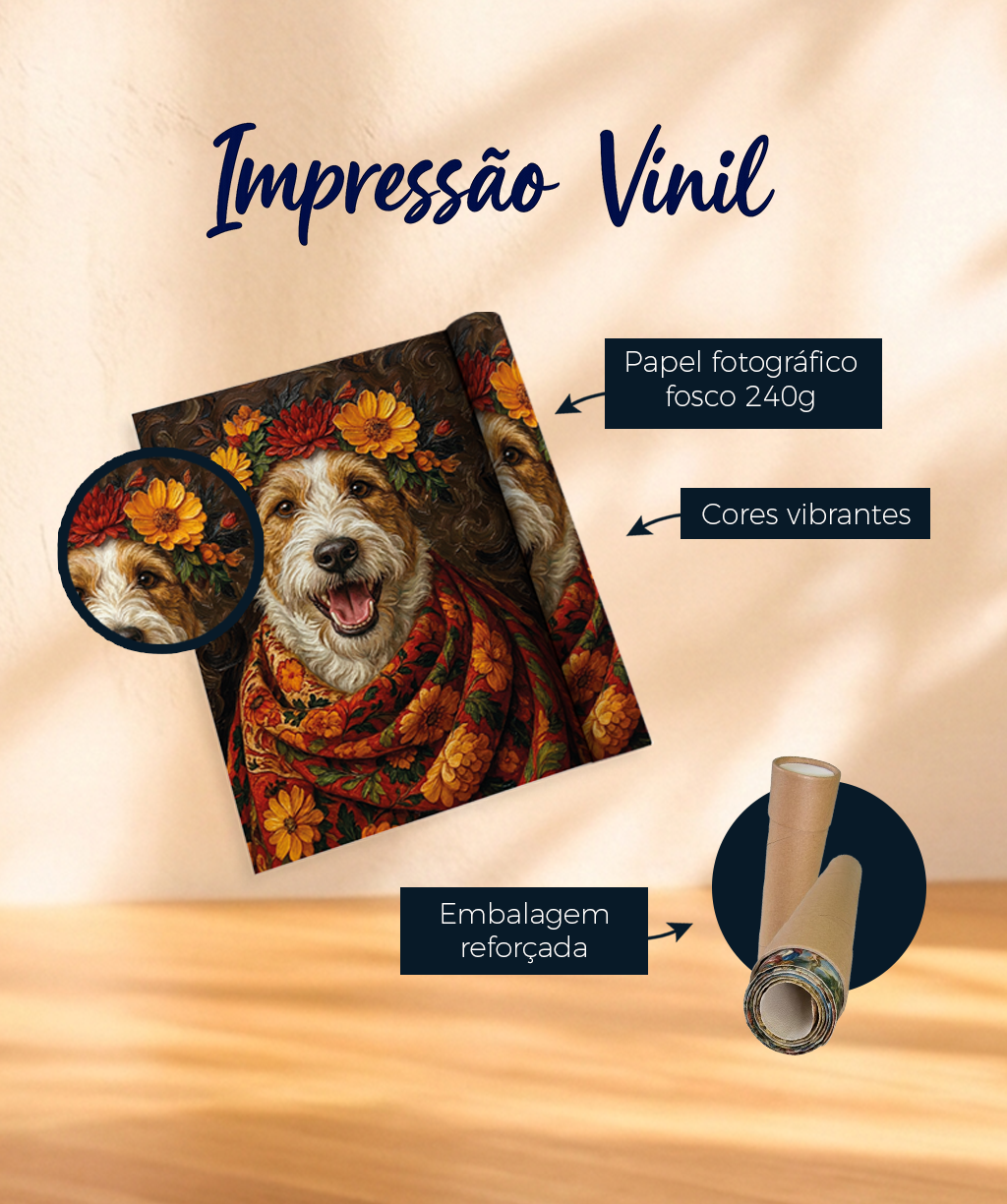 Uma opção prática e versátil, ideal para quem busca um acabamento moderno e com excelente custo-benefício. A impressão em papel fotográfico fosco garante cores vibrantes e boa definição, enquanto a possibilidade de envio enrolado facilita o transporte e a instalação.